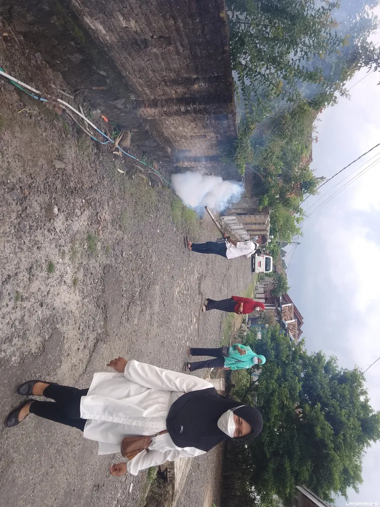 Petugas kesehatan Puskesmas Kalianda setempat Bidan Desa Ibu Rolia Distiarini gerak cepat melakukan fogging dan penyuluhan kepada warga untuk mencegah penyebaran penyakit yang sudah tidak asing lagi terjadi di lingkungan masyarakat Desa.