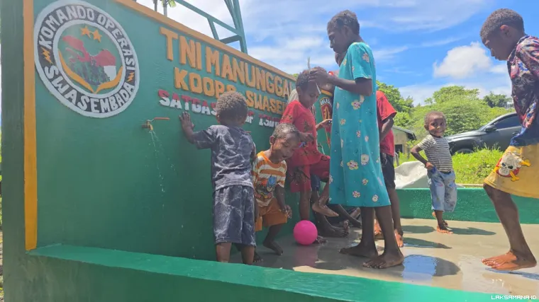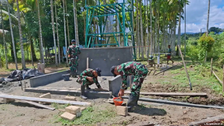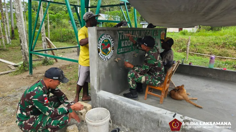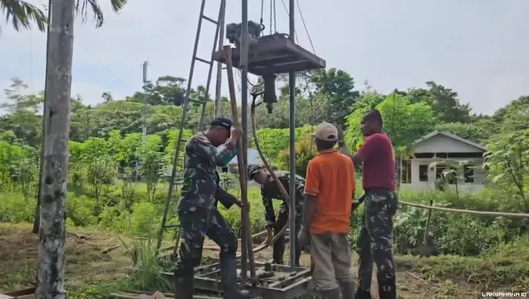 Satgas Yonif 131/Brajasakti kembali menunjukkan kepeduliannya kepada masyarakat perbatasan dengan melaksanakan program TNI- AD Manunggal Air di Kampung Amyu, Distrik Mannem, Kabupaten Keerom. Sabtu (30/8/2025).