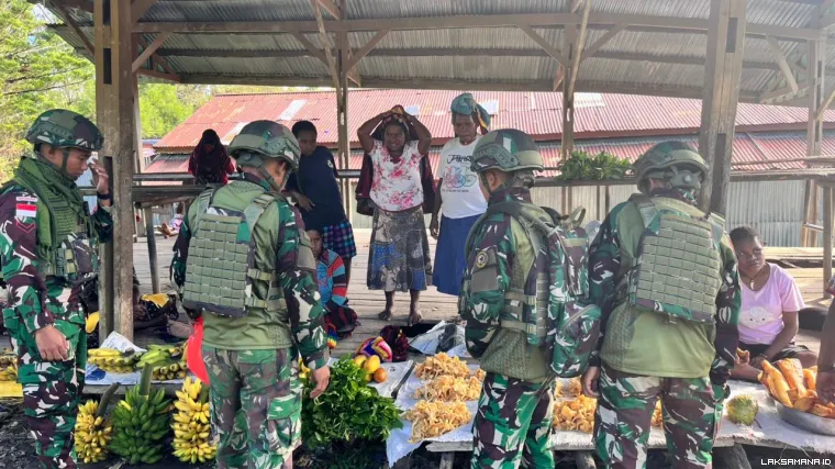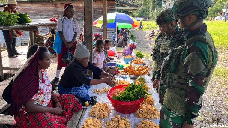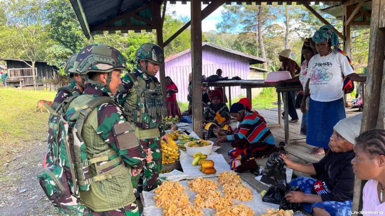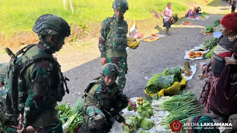 Dalam rangka membantu meningkatkan perekonomian masyarakat Distrik Kelila, Satgas Yonif 521/DY Pos Kelila Borong Hasil Bumi dari masyarakat di Pasar Kampung Kelila.