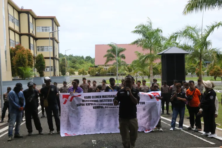 “Kami hadir untuk menjaga kepolisian, saya harap suara kami dari timur bisa didengar oleh bapak Kapolri untuk meninjau kembali atas putusan PTDH kepada Kompol Kosmas Kaju” ucap Jalil.