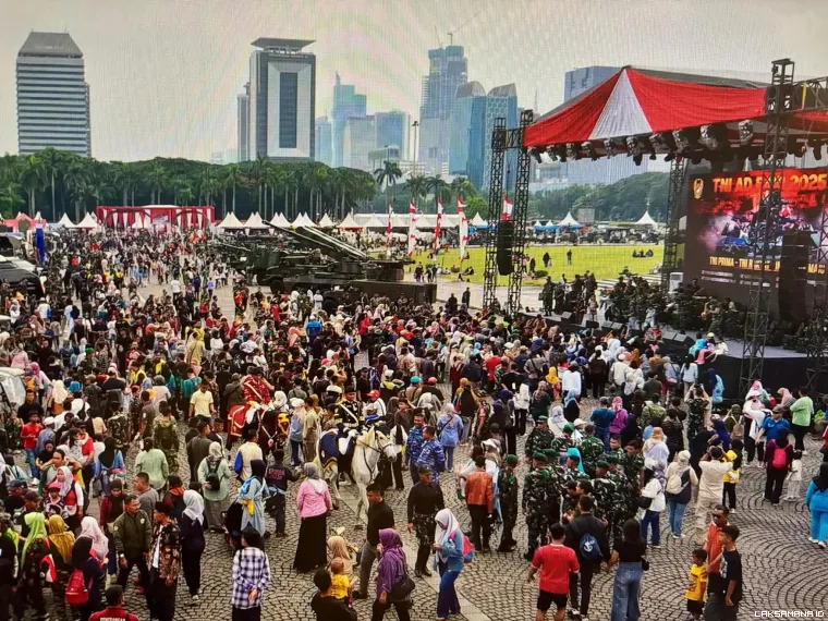 Suasana meriah menyelimuti kawasan Pintu Timur Silang Monas, Jakarta Pusat, Sabtu (20/9/2025), titik lokasi dimana TNI AD menggelar 22 stand satuan jajarannya dalam TNI Fair 2025. Event besar yang menjadi bagian dari rangkaian HUT ke-80 TNI ini langsung menarik antusiasme masyarakat sejak pagi, dengan ribuan pengunjung memadati area Monas.
