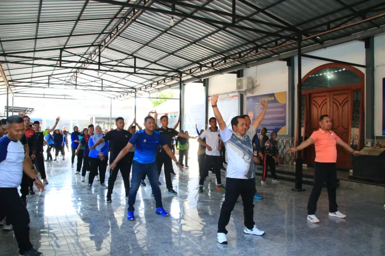 Laksamana.id | Banyuwangi - Suasana berbeda terlihat di Lapas Kelas IIA Banyuwangi, puluhan petugas dan warga binaan tampak kompak melakukan senam bersama di Lapangan Apel Lapas, Sabtu (4/10). Aktivitas ini digelar sebagai bagian dari upaya membina kesehatan jasmani dan rohani serta mempererat hubungan antara petugas dan warga binaan.