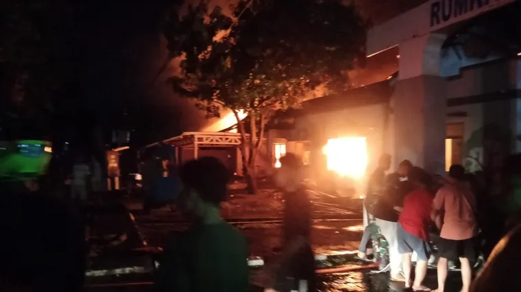 Warga sekitar dan personel TNI AL tampak bahu-membahu membantu evakuasi barang-barang dari dalam bangunan yang terbakar. Berkat kesigapan tim gabungan, kobaran api berhasil dipadamkan dalam waktu singkat.