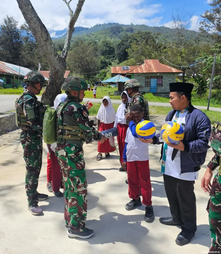 Menunjukkan kepedulian TNI terhadap kebugaran masyarakat lokal, Satgas Yonif 521/DY termasuk memberikan bantuan sarana olahraga karena minimnya fasilitas olahraga bagi masyarakat dan anggota Satgas di Distrik Walesi, Jayawijaya, Papua Pegunungan (28/10/2025)