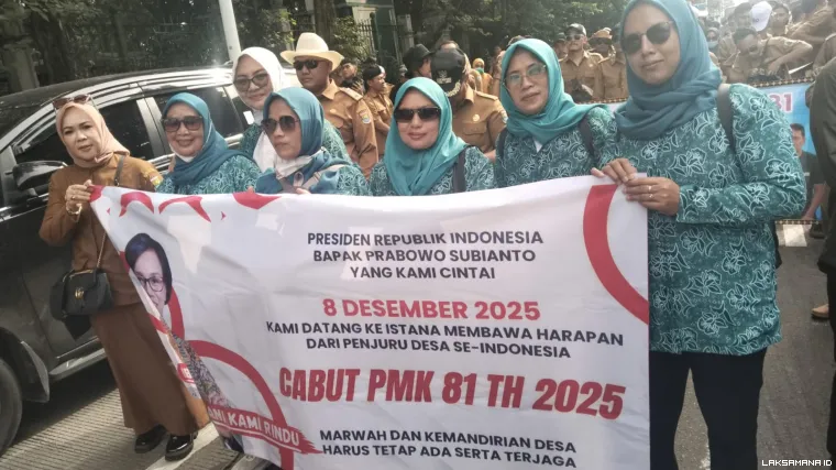 Sekitar 50 peratin (kepala desa) yang tergabung dalam organisasi APDESI ,Asosiasi Pemerintah Desa Seluruh Indonesia, Kabupaten Lampung Barat turut ambil bagian dalam aksi nasional di Jakarta, Senin 8 Desember 2025, untuk menyatakan penolakan terhadap PMK Nomor 81 Tahun 2025. Aksi ini digelar di sekitar kawasan Istana Negara bersama ribuan perangkat desa dari berbagai daerah di Indonesia.