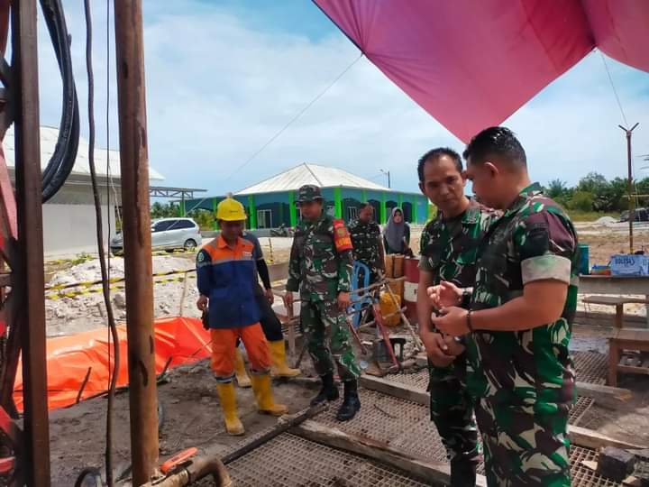 Dalam waktu bersamaan Dandim juga menyampaikan kepada Pgs Danramil Sungailiat agar senantiasa membantu warga yang merasa kesulitan air di wilayah karena air adalah salah satu sumber kehidupan manusia, terangnya.Pembuatan sumur bor mewujudkan TNI Manunggal Air Bersih khususnya Kodim 0413/Bangka untuk membantu mengatasi kesulitan masyarakat di sekitarnya. Pelaksanaan pengeboran melibatkan personel dari Koramil 413-01/Sungailiat jajaran Kodim 0413/Bangka dan PT.Timah Tbk.Saat meninjau lokasi pengeboran Dandim mengatakan kegiatan hari ini pengeboran telah mencapai kedalaman 52 meter, ini masih tahap awal dan belum mendapatkan sumber air yang bagus, sehingga terus dilakukan pengeboran,"ungkapnyaLanjutnya “Kami akan menuntaskan program sumur bor ini sehingga bisa dimanfaatkan bagi warga sekitar, Mudah-mudahan bantuan pembuatan sumur bor yang dilakukan saat ini menjadikan amal ibadah kita semua," pungkasnya. (Red).