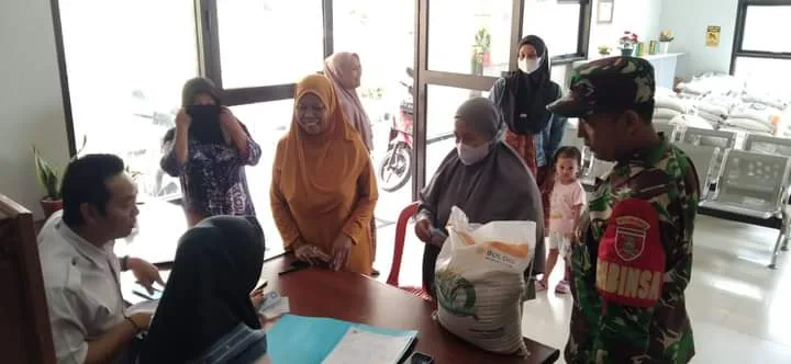 Laksamana l Samarinda - Bulog Kota Samarinda kembali salurkan beras ke masyarakat dalam rangka membantu masyarakat akibat naiknya harga beras. Babinsa Kelurahan Pelita Koramil 02/Sungai Pinang Pelda Tataq membantu petugas dalam pendistribusian beras, bertempat di Aula Kelurahan Pelita Jl. Lambung Mangkurat RT. 15 Kelurahan Pelita Kecamatan Samarinda Ilir. Selasa (14/11/23)Lurah Pelita Bapak Faruroji, S.Sos., menyampaikan bahwa Bulog secara langsung menyalurkan beras bantuan pangan kepada para Keluarga Penerima Manfaat (KPM) sebagai upaya Pemerintah membantu masyarakat akibat naiknya harga beras saat ini.