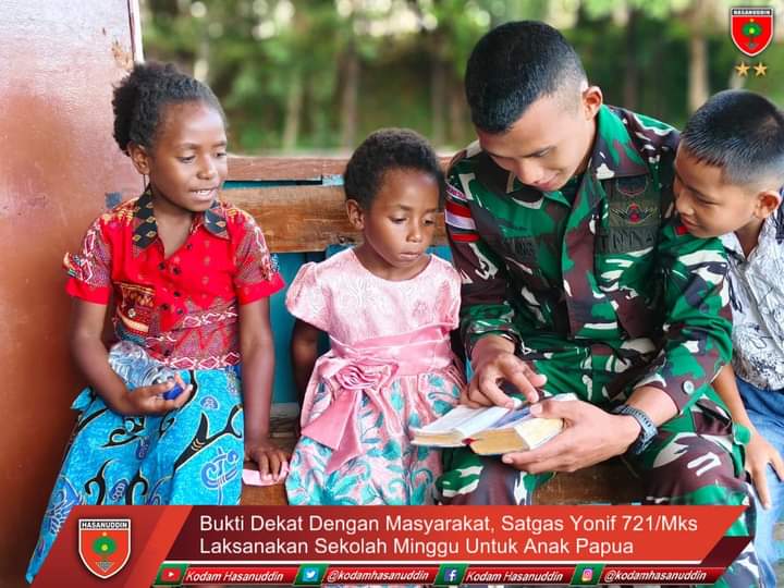 Lanjut Danpos mengatakan, dengan memiliki kegiatan positif yang menyenangkan, diharapkan menumbuhkan motivasi masyarakat khususnya anak-anak untuk datang ke gereja.Aten Jigwa selaku Pendeta Gereja mengucapkan terima kasih atas kepedulian Satgas Yonif 721/Mks terhadap anak-anak di Papua."Terima kasih atas kepedulian Satgas TNI dari Yonif 721 mau mengajarkan anak-anak disini untuk meningkatkan keimanannya, semoga kegiatan ini terus berlanjut, Tuhan Memberkati", ungkapnya.Dansatgas Yonif 721/Mks Letkol Inf Heri Kuswanto, S.I.P. Menyampaikan dalam keterangannya di Lanny Jaya bahwa tugas pokok Satgas Yonif 721/Mks yaitu selain menjaga keutuhan wilayah, juga mempunyai tugas tambahan yaitu menyatu dengan rakyat dengan cara melaksanakan kegiatan teritorial yang bersifat membangun, melayani, dan mengayomi masyarakat sekitar.