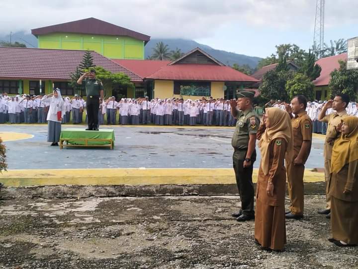 Laksamana l Solok -- Plh Danramil 09/Gunung Talang Kodim 0309/Solok Letda Inf Ahmad Guntur bersama tiga orang anggota memberikan materi wawasan kebangsaan (Wasbang) kepada Siswa dan siswi SMKN 01 Gunung Gunung Talang di Kec. Pantai Cermin, Kab. Solok. Senin 20 November 2023.Kegiatan Wasbang tersebut bertujuan untuk menumbuhkan jiwa patriotisme dan menanamkan nilai-nilai Pancasila serta rasa cinta terhadap tanah air, hal tersebut penting dilaksanakan, agar para siswa-siswi ini dapat menjadi generasi-generasi penerus bangsa yang tangguh, disiplin dan handal yang dapat membanggakan orang tua, masyarakat, bangsa dan negara.