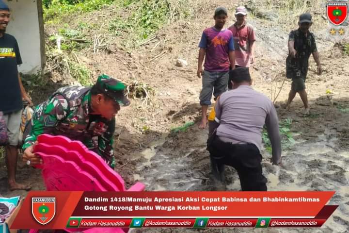 Dandim 1418/Mamuju Apresiasi Aksi Cepat Babinsa dan Bhabinkamtibmas Gotong Royong Bantu Warga Korban Longsor