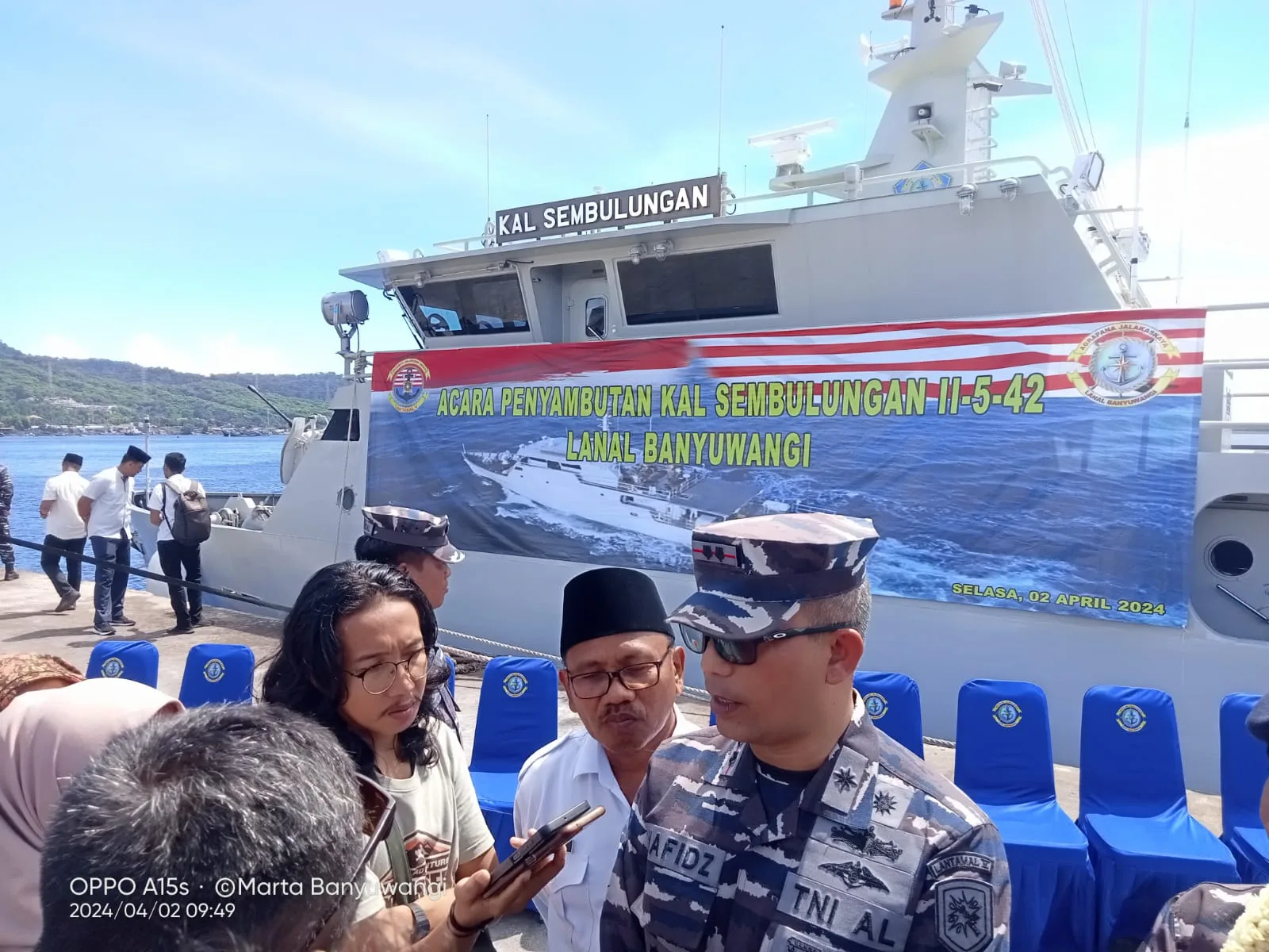 Laksamana | Banyuwangi - Hari ini 02/04/2024, Lanal (Lantamal V) Brigjen TNI Marinir Joni Sulistiawan mengadakan kunjungan penting ke LANAL Banyuwangi untuk meresmikan kapal perang terbaru, Kal Sembulung 11-54. Kedatangan Brigjen TNI Marinir Joni Sulistiawan disambut dengan antusias oleh para petinggi dan anggota LANAL Banyuwangi.Dalam sambutannya, Brigjen TNI Marinir Joni Sulistiawan mengungkapkan kebanggaannya atas kehadiran Kapal Perang Kal Sembulung 11-54, yang akan memperkuat kekuatan TNI AL dalam menjaga keamanan dan kedaulatan di perairan Indonesia Timur. Beliau juga menyampaikan apresiasi kepada seluruh tim yang terlibat dalam proses pembuatan dan pengadaan kapal tersebut.