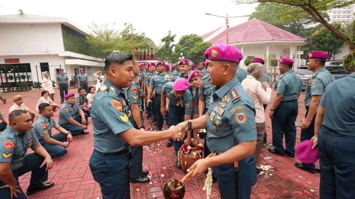 Laksamana l Jakarta - Komandan Detasemen Markas (Dandenma) Markas Komando Korps Marinir (Mako Kormar) Kolonel Marinir Andi Ichsan, S.H., M.Tr. Hanla., M.M., CRMP., memimpin Upacara Laporan Korps kenaikan Pangkat dan penyematan pangkat Perwira, Bintara, Tamtama dan PNS, terhitung mulai tanggal 1 April 2024, naik satu tingkat lebih tinggi dari pangkat semula. Acara bertempat di Lapangan Apel Barungu Mako Kormar, Jl Prajurit KKO Usman dan Harun No. 40 Kwitang Jakarta-Pusat, Selasa (02/04/2024).Sebanyak 40 prajurit Marinir dan PNS Mako Kormar yang mendapat kenaikan pangkat setingkat lebih tinggi, terdiri dari personil Pama, Bintara, Tamtama dan PNS. Dimana acara diawali dengan upacara dan laporan Korps kenaikan pangkat.
