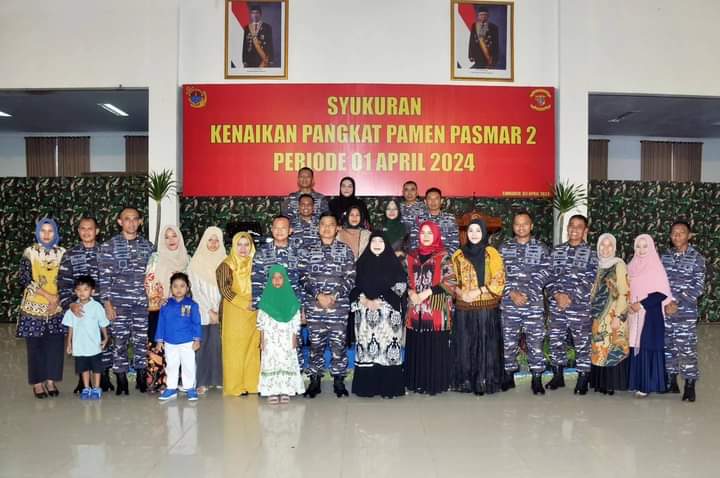 Sedangkan Komandan Pasmar 2 dengan rasa bangga dan bahagia mengucapkan selamat kepada para Pamen yang telah mendapatkan anugerah kenaikan pangkat satu tingkat lebih tinggi. Kenaikan pangkat ini bukanlah proses yang singkat, namun melalui seleksi administrasi kemudian pantauan dari masing-masing kepala bagian atau atasan kita masing-masing terhadap dedikasi kinerja kita dalam keseharian, sehingga periode kepangkatan yang lama sampai tiba waktunya itu sudah diusulkan betul-betul eligible.“Anugerah ini juga berkat upaya dan usaha masing-masing pribadi dan prajurit untuk mempertahankan dan meningkatkan baik itu kinerjanya, loyalitasnya dan dedikasinya terhadap tugas yang diemban saat ini. Penghargaan yang diberikan oleh dinas dalam hal ini pemimpin TNI Angkatan Laut, khususnya Komandan Korps Marinir kepada perwira-perwira dianggap layak untuk mendapatkan kehormatan dinaikan pangkatnya”, ucap Danpasmar 2.“Semoga acara syukuran di bulan suci Ramadan ini dapat menambah keberkahan, lebih menyatukan tekad dan semangat kita untuk para perwira bisa lebih solid di jajaran Pasmar 2. Tidak ada tugas yang berat bagi prajurit Marinir khususnya Pasmar 2 kalau kita melaksanakannya semua dengan penuh keikhlasan, tulus dan kita bekerja sama serta sama-sama bekerja menyelesaikan tugas pokok Pasmar 2 yang dibebankan kepada kita”, pungkas Danpasmar 2. (Red).
