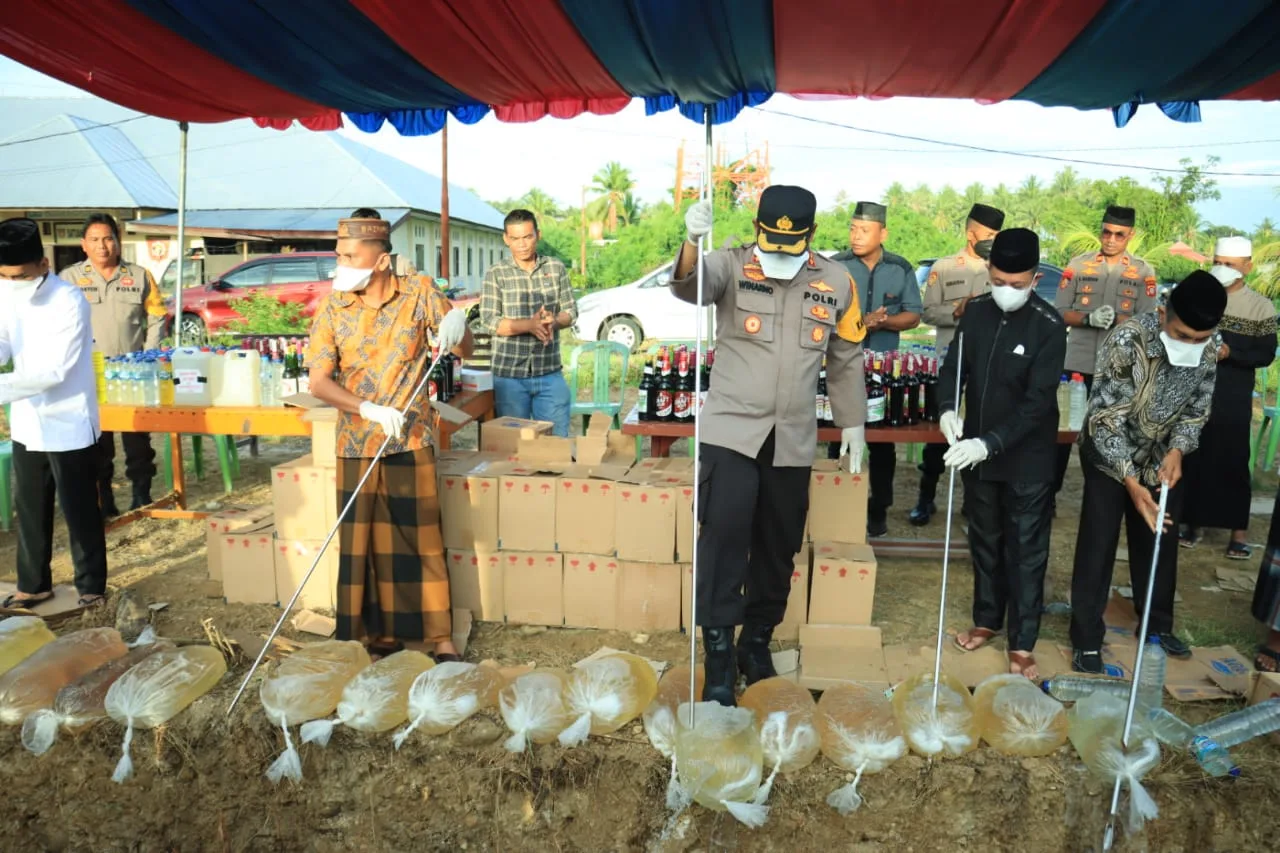 Pemusnahan tersebut dipimpin langsung oleh Kapolres Pohuwato, dan diikuti oleh unsur Forkopimda Pohuwato bersama tokoh agama, tokoh masyarakat kab. Pohuwato.AKBP Winarno menjelaskan ribuan liter miras tersebut merupakan hasil razia yang dilakukan oleh Polres Pohuwato serta Polsek Jajaran, sejak 01 Januari 2024 sampai dengan 31 Maret 2024.