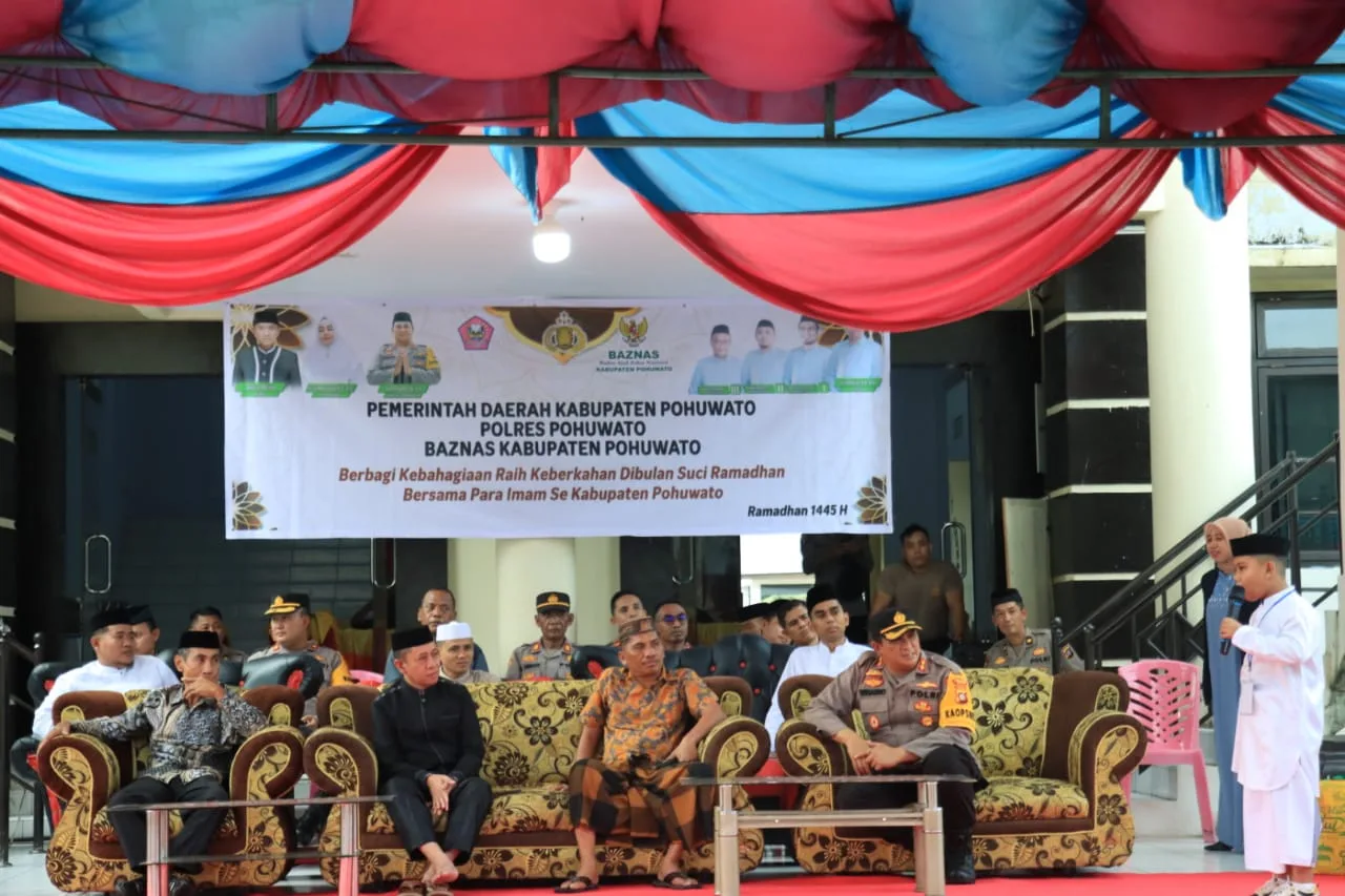 Dalam kegiatan itu di awali dengan sambutan Ketua Nahdlatul Ulama (NU) kab kabupaten Pohuwato Daiman Ali dan juga selaku ketua Baznas.dalam sambutannya mengatakan, Safari Ramadhan Forkopimda dan Baznas kab. Pohuwato, seperti kegiatan sebelumnya digelar pada bulan Ramadhan,dan ini dilaksanakan disemua kecamatan yang ada di kabupaten Pohuwato, Seperti yang pertama kali dilaksanakan berupa pembagian THR kepada para Imam sekabupaten Pohuwato dalam rangka kolaborasi dengan Polres Pohuwato dan Polsek Jajaran."kata Daiman Ali.Lebih lanjut Ketua Nahdlatul Ulama kab. Pohuwato juga mengatakan "Kapolres Pohuwato memberikan spirit sangat positif serta memberikan gebrakan berupa kegiatan Gebyar Ramadhan", untuk menyemarakan bulan suci Ramadhan 1445 Hijriah, yang pertama kalinya di laksanakan di kabupaten Pohuwato."tutur Ketua NU. (Juma) Editor : Pimred Laksamana.idForkopimda dan Baznas Laksanakan Safari Ramadhan di Polres Pohuwato