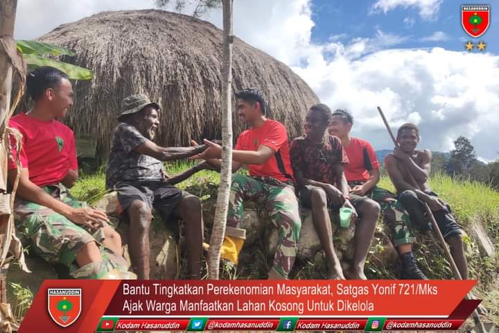Laksamana l Papua Pegunungan - Satgas Pamtas Kewilayahan Yonif 721/Mks ajak masyarakat yang memiliki lahan kosong untuk dikelola, kali ini Pos Malagay Satgas Yonif 721/Mks bantu warga mengelola lahan kosong yang nantinya akan ditanami bibit sayur-sayuran dan buah-buahan bertempat di Kampung , Distrik Malagay, Kab. Lanny Jaya, Papua Pegunungan, Sabtu (06/04/24).Kegiatan tersebut merupakan program ketahanan pangan nasional, sesuai dengan arahan komando atas, dengan memanfaatkan lahan kosong menjadi lahan produksi, dalam membantu kesejahteraan masyarakat di wilayah perbatasan RI-PNG khusunya Kampung Banda, Distrik Waris, sekaligus memberikan sosialisasi kepada masyarakat, hal tersebut disampaikan Dansatgas Mayor Inf Diki Apriyadi,S,Hub.int, pada saat diwawancarai.