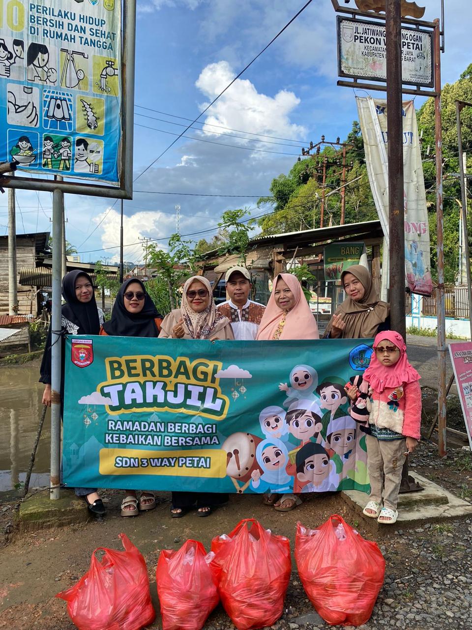 SDN 3 Way Petai Kabupaten Lampung Barat yang tergabung beberapa Siswa dan Siswi membagikan takjil dan menu buka puasa yang dibagikan secara geratis kesejumlah pengendara termasuk kepada warga sekitarDalam kesempatan Kepsek SDN 3 Way Petai (Jati rahayu s.pd.sd) menjelaskan, kegiatan ini merupakan program sosial yang digagas oleh beberapa guru guru dan tak luput iya berkordinasi dengan ktua komite bapak (Hamidi Indra Jaya )