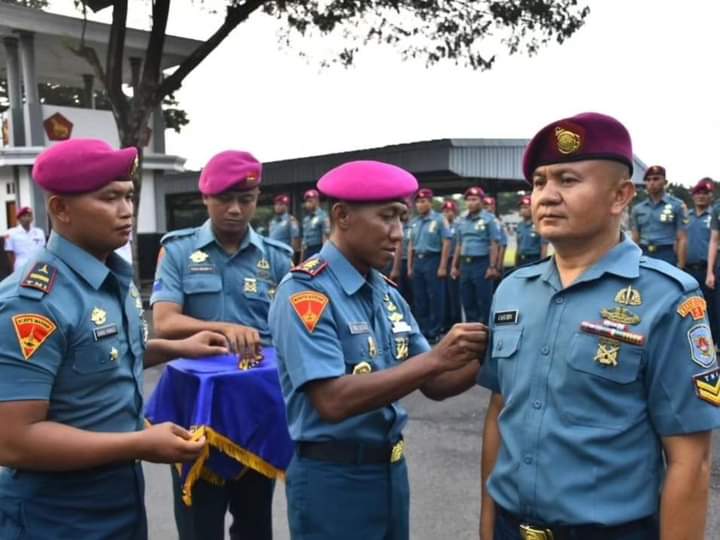 Laksamana l Surabaya - Dispen Kormar, TNI AL (Surabaya). Komandan Batalyon Arhanud 2 Marinir Letkol Mar Yogi Setiaji memimpin upacara kenaikan pangkat prajuritnya periode 01 April 2024 dan Purna Tugas di Halaman depan Batalyon Arhanud 2 Marinir, Kesatrian Marinir Sutendi Senaputra Karang Pilang, Surabaya. Kamis (04/04/2024)Sebanyak 26 personil naik pangkat satu tingkat lebih tinggi dari pangkat semula pada periode 01 April 2024 dan purna tugas sebanyak 6 personil Batalyon Arhanud 2 Marinir diantaranya yang naik pangkat yakni Serma ke Pelda 1 pers, Serka ke Serma 3 pers, Sertu ke Serka 7, Serda ke Sertu 3 Pers, Kopda Ke Koptu 4 pers, Pratu ke Praka 7 pers dan Prada ke Pratu 1 pers. Adapun prajurit yang memasuki masa purna tugas yaitu Pelda Mar (Purn) Fatchu S, Serma Mar (Purn) Ifik R, Serma Mar (Purn) Djuliston S, Serma Mar (Purn) Handaru S, Serma Mar (Purn) Darmadji dan Serma Mar (Purn) Sugimin.