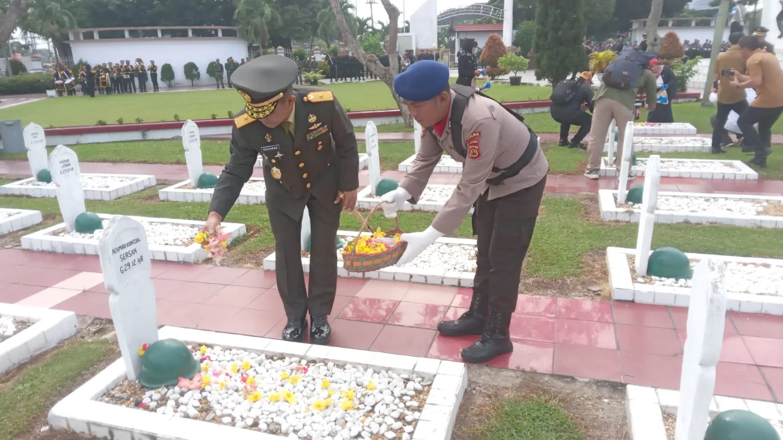 Tampak juga Gubernur Jambi Dr. Al Haris, Plt. Kajati Jambi serta para undangan lainnya.Sejumlah Prajurit TNI dan Polri turut juga serta sebagai pasukan dalam upacara ini sebagai bentuk Sinergitas dalam memperingati peristiwa bersejarah ini.