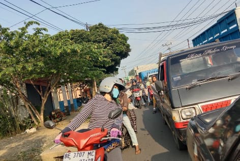 Laksamana l Lampung Barat - Kemacetan lalu lintas (Lalin) kendaraan kerap kali terjadi di ruas jalan nasional, tepatnya di depa Stasiun Pengisian Bahan Bakar Umum (SPBU) Karang Agung, Kecamatan Way Tenong, Kabupaten Lampung Barat.Karena kemacetan yang cukup padat tidak sedikit kendaraan khususnya roda dua harus menyelinap lewat halaman rumah warga walaupun harus dengan resiko tergelincir pada drainase jalan.
