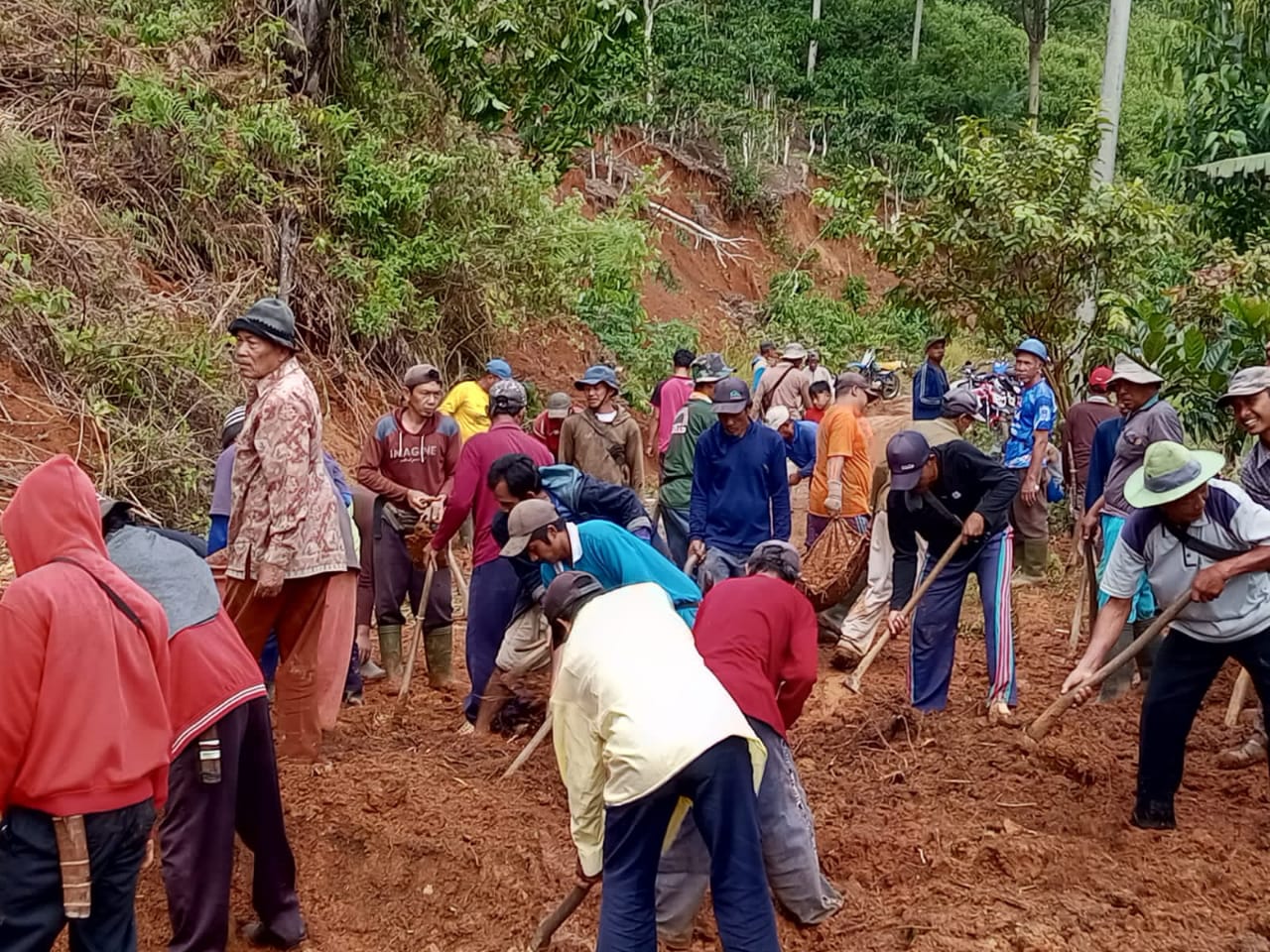 Laksamana l Lampung Barat - Antisipasi musim hujan Pekon Way Petai Gotong-Royong Bersama melaksanakan pembersihan, Tanah longsor yang menutupi Jalan Cengkaan Talang Ogan Pekon Way Petai, dihadiri oleh masyarakat kedusunan Minggu, 26/05/2024.Peratin, Kepala dusun dan BhabinKamtibmas,Sultan Sahril,Selaku Peratin berterima kasih Kepada Bhabinkamtibmas yang selalu hadir dalam memajukan Kegiatan sosial wabil husus kepada Masyarakat, yang selalu Kompak dan Menjaga ke akrap satu sama lain, juga terus nanjaga tradisi dan ciri khas Masyarakat pedesaan, yaitu Gotong Royong,β kata Sultan Sahril.