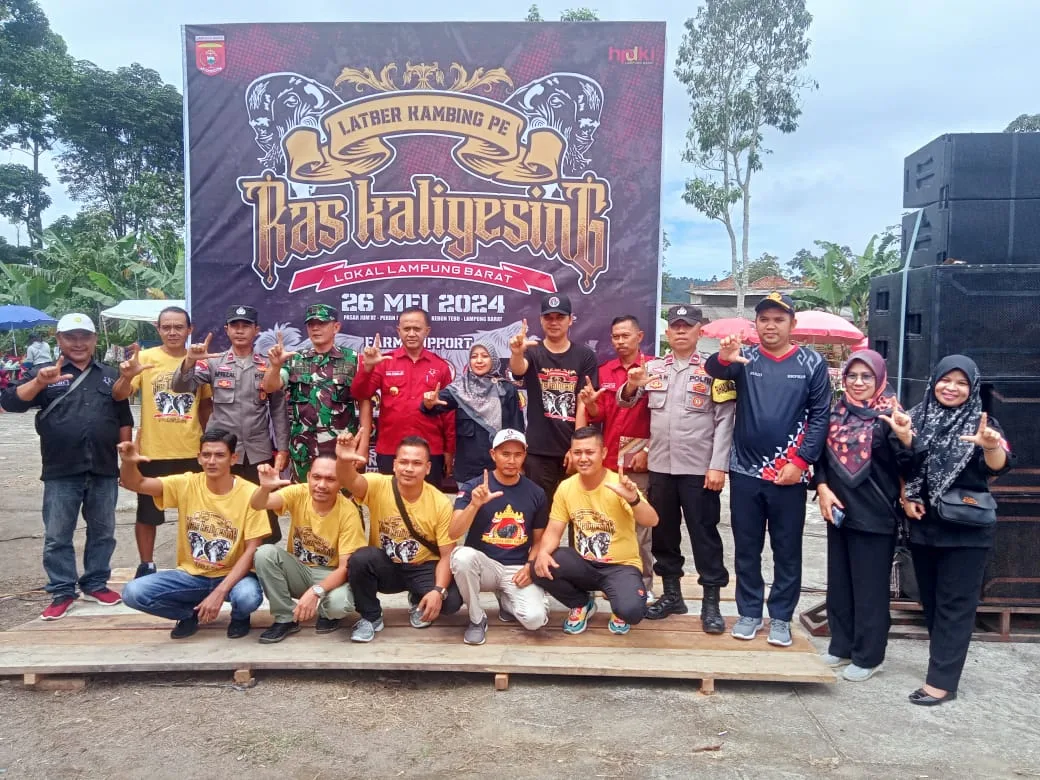 Bhabinkamtibmas dan Babinsa dan Selurah Panitia penyelengara Latber Kambing PE Ras Keligesing Muara Jaya Satu, Kecamatan Kebun Tebu Lampung Barat.Subarkat Peratin Muara Jaya Satu dalam sambutan nya menyampaikan kepda seluruh kontestan selain penilaian tidak lain untuk sambung silaturahmi sesama peternak.