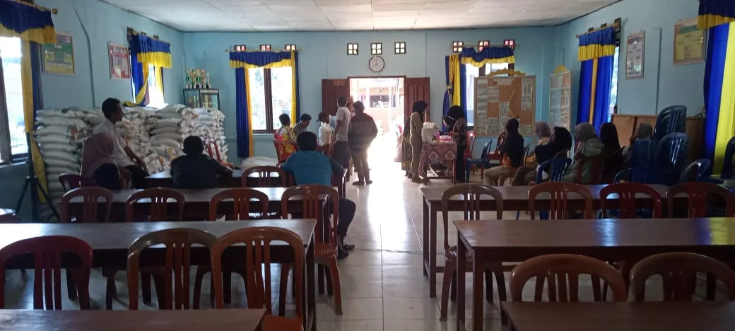 Laksamana l Lambar - Pemerintah Pekon Tri mulyo Kecamatan gedung surian Kabupaten Lampung Barat, kembali menyalurkan bantuan beras Cadangan Pangan Pemerintah (CPP) di bulan mei ,kepada 463 penerima tergabung di 11 pmk , yang dilaksanakan di balai pekon.Kegiatan tersebut dihadiri pj Peratin, BUCHORI .S .p dan sejumlah aparatur desa setempat .