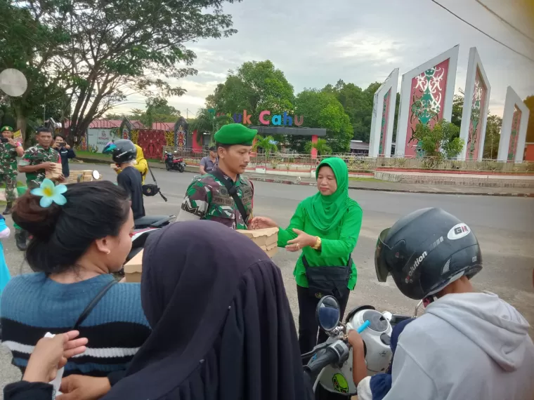 Laksamana.id | Murung Raya - Dalam rangka berbagi keberkahan di bulan suci Ramadan, Danramil 1013/15 Seribu Riam bersama Danramil Batura menggelar aksi sosial dengan membagikan takjil gratis kepada masyarakat di Bundaran Alun-Alun Puruk Cahu, Kabupaten Murung Raya.