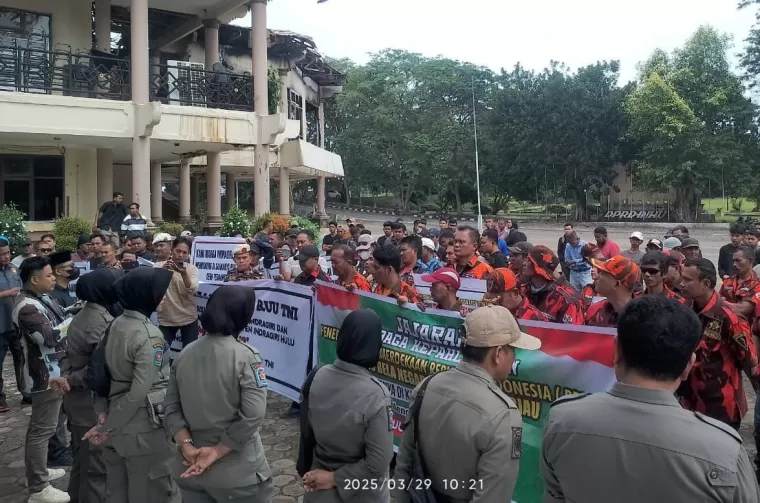 Laksamana.id | Inhu - Aliansi Mahasiswa bersama sejumlah organisasi masyarakat di Kabupaten Indragiri Hulu melakukan aksi damai di Kantor DPRD Indragiri Hulu, Sabtu (29/03/25).
