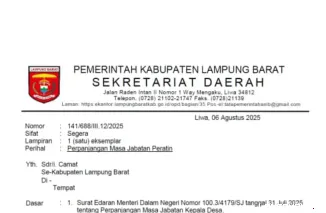 Total 60 Peratin di Lampung Barat di Perpanjang Masa Jabatannya berdasarkan surat edaran Mendagri Berita Minggu, 10 Agustus 2025, 12:31 WIB